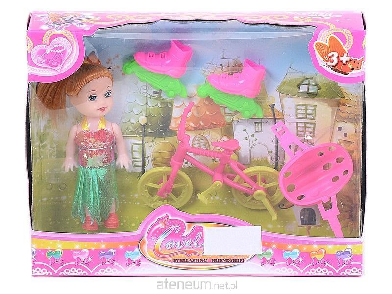lalka mini z rowerkiem i rolkami; 19x14,5x4cm, W/B