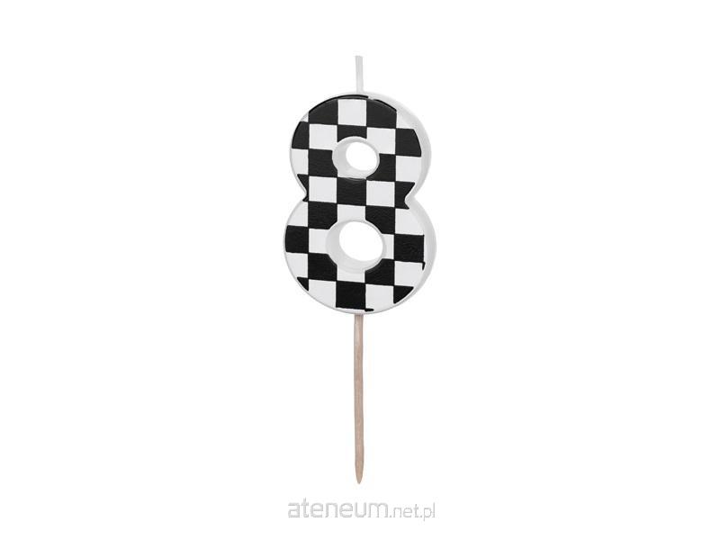 Świeczka urodzinowa Cyferka 8 ze wzorem szachownicy, rozmiar ok. 5.5 cm.