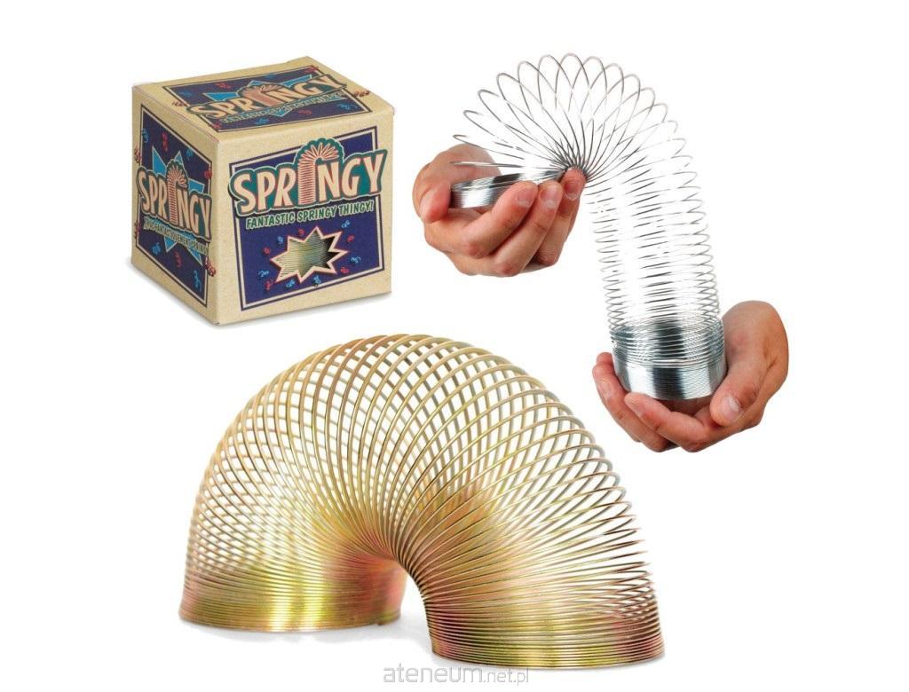 Standardowa, znana od wielu lat, sprężyna do zabawy, która w tym przypadku została wykonana z metalu. Jest ona cięższa niż klasyczne zabawki, a do tego wygląda bardziej elegancko poprzez połyskliwy kolor metaliczny. Sprężyną można bawić się w dłoniach jak i spuszczać ją po schodach. Średnica zabawki to 7cm.