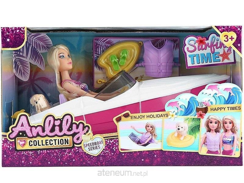 Lalka 29cm w motorówce, z pieskiem; 37x21,5x16cm, W/B