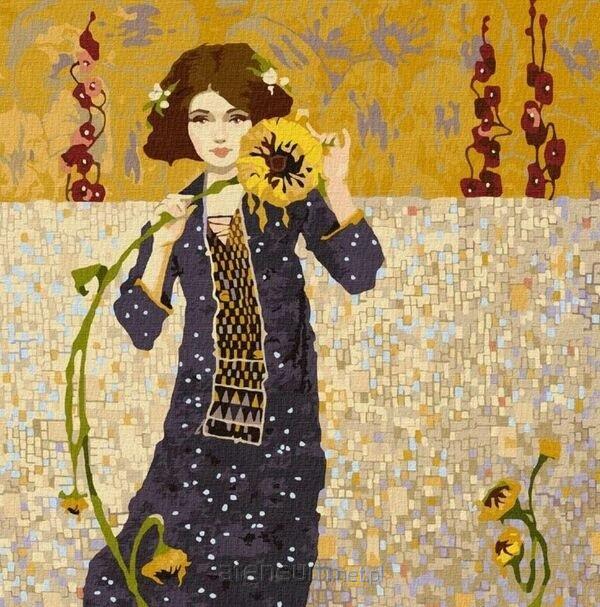 Malowanie po numerach - Dziewczyna ze słonecznikiem (C)tolstukhin artem" 40x40cm