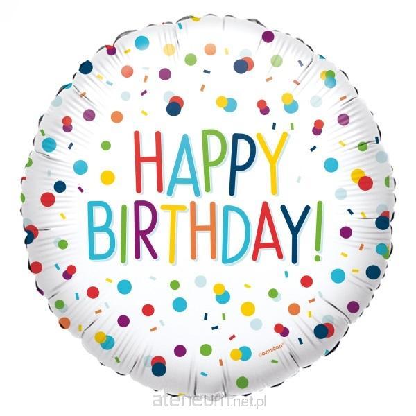 balon foliowy confetti birthday standard okrągły zapakowany 43cm