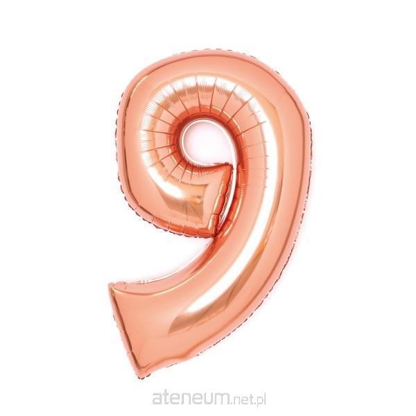 Balon foliowy cyfra 9 różowe złoto zapakowany 47 cm x 66 cm