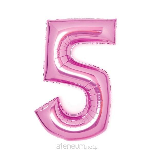 Balon foliowy cyfra 5 różowy zapakowany 52 cm x 66 cm