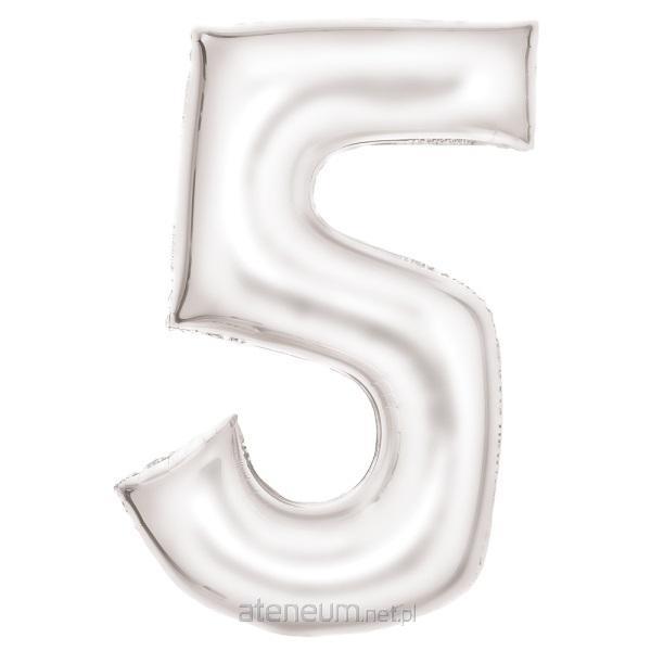 Balon foliowy cyfra 5 satynowy biały zapakowany 86 cm