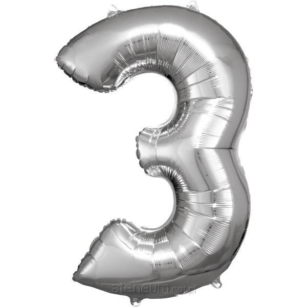 balon foliowy cyfra 3 srebrny zapakowany 58 cm x 86 cm