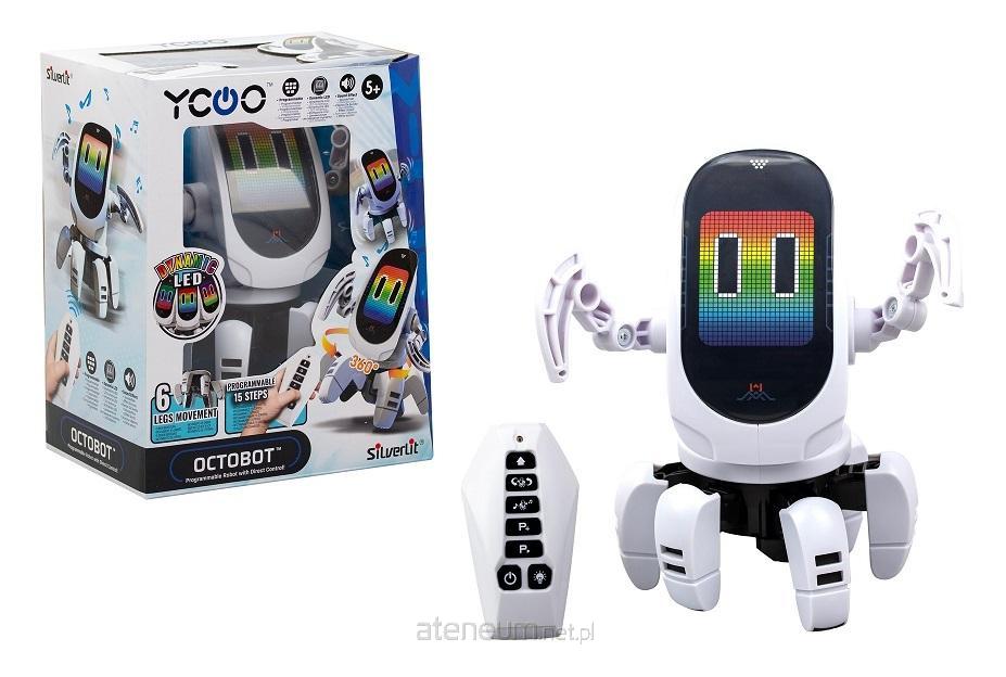 Wesoły stworek porusza odnóżami, na wzór ośmiornicy, wykonując zadane mu polecenia! W zestawie, poza robotem, znajduje się pilot z przyciskami oznaczonymi ikonkami, a każdemu z nich przypisana jest inna funkcja. Programuj robota, zadając mu do 15 poleceń, aby odtworzył sekwencję ruchów w niezmienionej kolejności. Stworek porusza się w charakterystyczny sposób, przekręcając tułów wraz z głową dookoła własnej osi, a następnie podążając w zadanym mu kierunku. Octobot potrafi także tańczyć i to na trzy różne sposoby. Zabawę uatrakcyjnia dynamiczny wyświetlacz LED.