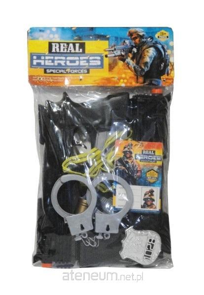 Zestaw dla małego policjanta. W zestawie znajdują się m. in: 2 pistolety, krótkofalówka, legitymacja, kajdanki i odznaka. Produkt zapakowany w przezroczysty worek. Zabawka dla dzieci od 3 lat. Podane wymiary są wymiarami opakowania.