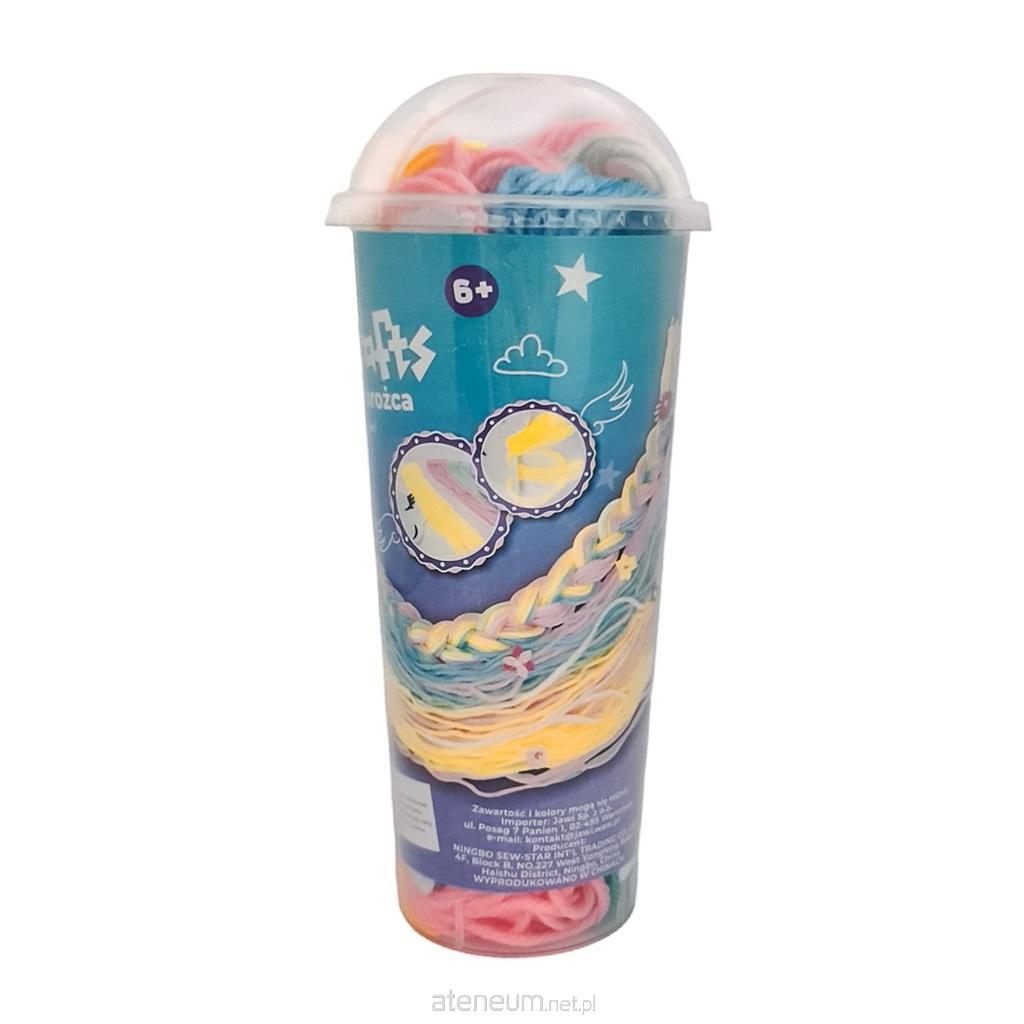 W zestawie: filcowy jednorożec, 23 naklejki filcowe, 6 kolorów włóczki, 6 samoprzylepnych klejnotów, instrukcja.