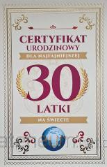 Karnet Certyfikat Urodzinowy 30 urodziny damskie