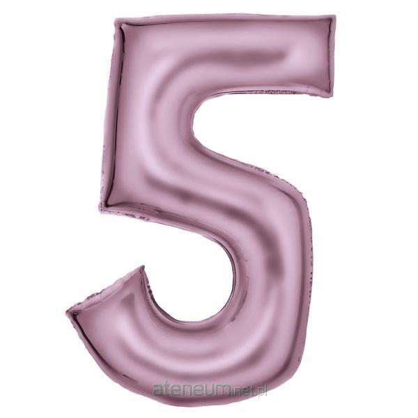 Balon foliowy cyfra 5 satynowa pastelowy róż 86 cm
