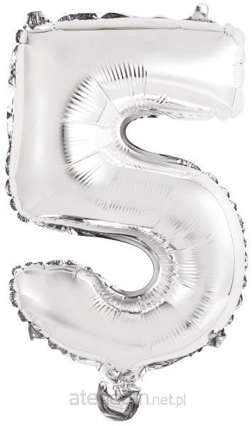 Mini cyfra 5 srebrny balon foliowy spakowany 25,5 cm x 40 cm
