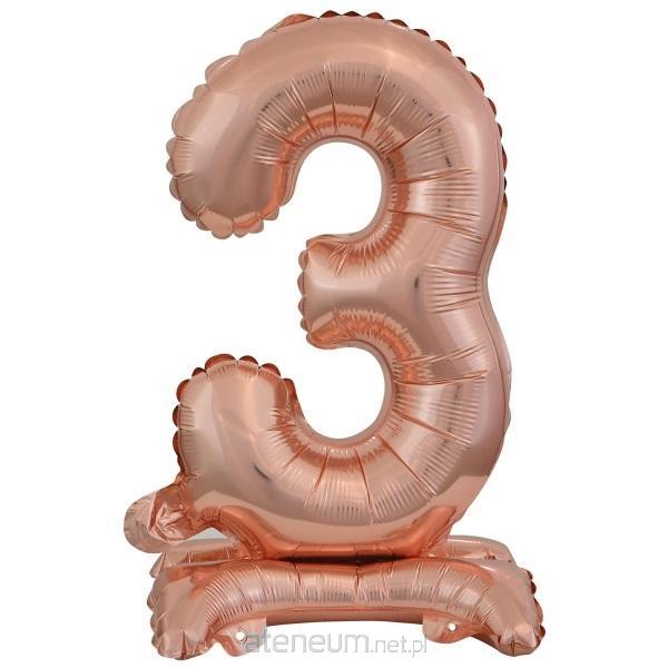 Mini cyfra 3 na stojaku różowe złoto balon foliowy zapakowany 22 cm x 40 cm