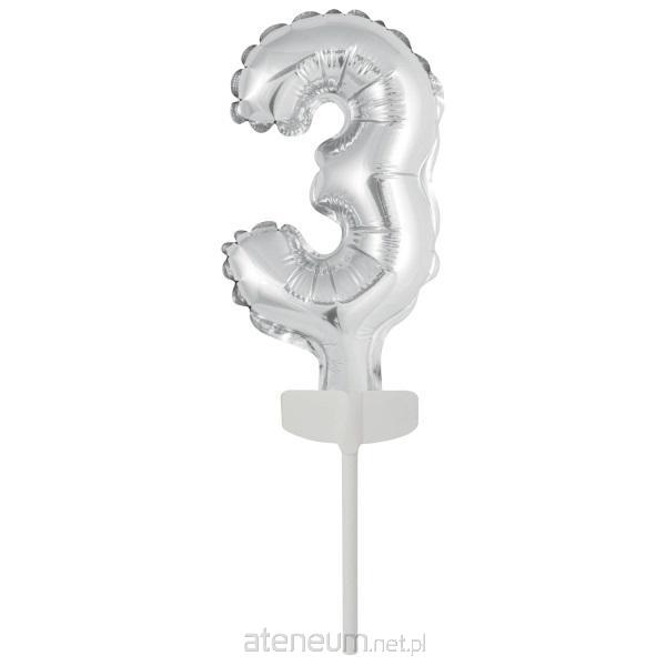 Balon foliowy mini cyfra 3 srebrna 7 cm x 12 cm