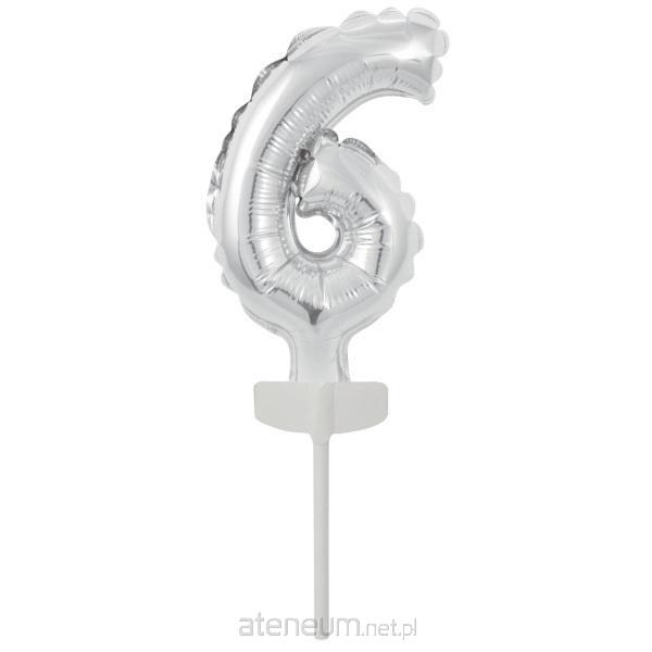 Balon foliowy mini cyfra 6 srebrna 7 cm x 12 cm