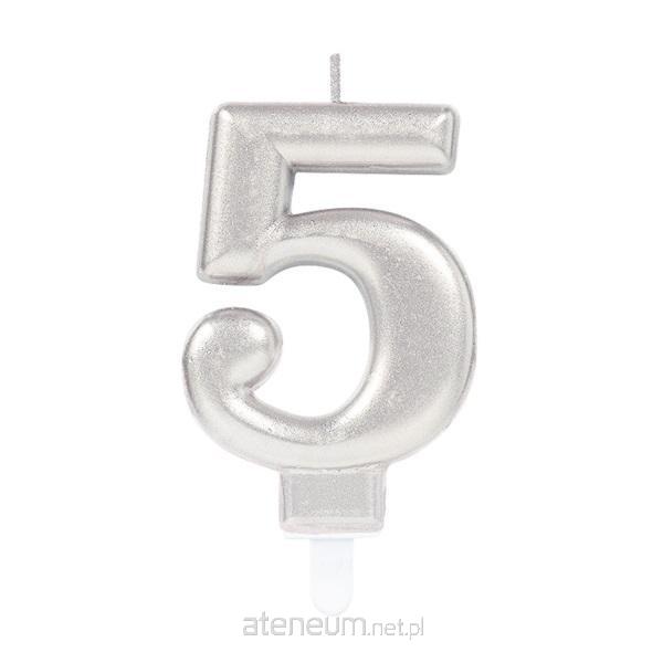 Świeczki cyferki 5 Sparkling Celebrations z uchwytem srebrna 9.3 cm