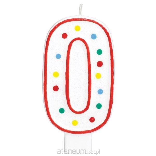 Świeczka urodzinowa cyferka 0 biała w kropki