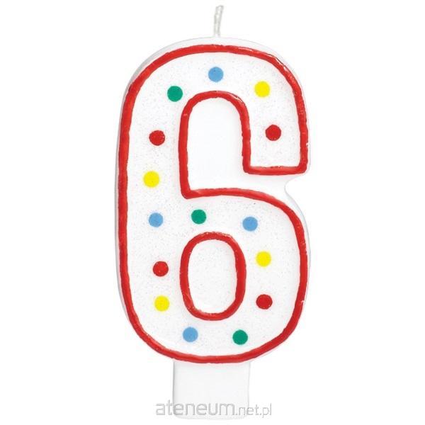 Świeczka urodzinowa cyferka 6 biała w kropki