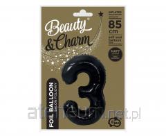 Balon foliowy B&C cyfra 3 matowa czarna 85cm