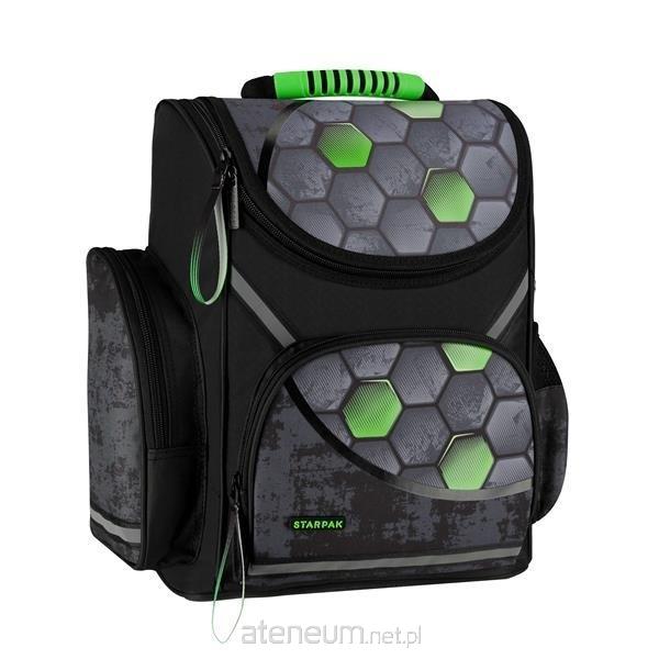 Jednokomorowy tornister typu hardbag wyposażony jest w system ergonomicznych pleców i ramion pokrytych gąbką zapewniającą swobodny przepływ powietrza i komfort użytkowania. Posiada wewnętrzny organizer, który ułatwia utrzymanie porządku. Dodatkowo, tornister został wyposażony w obszerną, przednią kieszeń na zamek i dwie mniejsze kieszenie boczne, z których jedna zapinana jest na zamek, a druga wykonana z siateczki jest idealna na bidon lub butelkę z napojem. Usztywniany, pokryty gumą dół zabezpiecza przed brudem i wilgocią. Z przodu i po bokach zostały wszyte elementy odblaskowe zapewniające dziecku bezpieczeństwo. Tornister w czarno-zielonych kolorach. Wygodny i funkcjonalny Tornister szkolny STARPAK z grafiką Football. Użytkowanie takiego plecaka to czysta przyjemność. Zapoznaj się również z innymi produktami STARPAK z tej serii. Produkt jest wyrobem tekstylnym. Przeznaczony dla dzieci w wieku: 3+. Wymiary produktu (wys. x szer. x gł.) [cm]: 37x32x22, pojemność tornistra 18l, waga produktu [kg]: 0,88 kg. Tornister pakowany w folię.