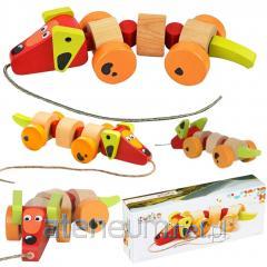 Zestaw składa się z drewnianej ciężarówki na kółkach. Na jej przyczepie znajduje się podstawa z prętami o różnych wysokościach, do których należy dopasować określoną liczbę klocków. Klocki posiadają rożne kolory oraz kształty.