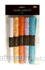Miks 5 papierów Indian Style -SHIVA-, format 25x35, a 5 arkuszy Piękne czerpane , barwione w masie papiery z dodatkowymi zdobieniami w stylu indyjskim. Nadruki wykonane z dodatkiem farby złotej i brokatowej.Gramatura 100.