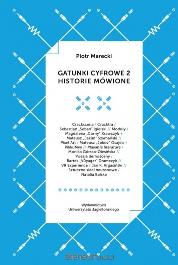 Gatunki cyfrowe 2 to historie mówione gatunków i praktyk cyfrowych. Bohaterami i bohaterkami są osoby programujące, projektujące, hakujące, tworzące muzykę, grafikę i literaturę w obszarze mediów cyfrowych. Są to Sebastian "Seban" Igielski, Magdalena "Corny" Krawczyk, Mateusz "Jakim" Szymański, Mateusz "Jokov" Osajda, PikkuMyy, Monika Górska-Olesińska, Bartek "V0yager" Dramczyk, Jan K. Argasiński oraz Natalia Balska. Czytelnik ma okazję poznać zestaw siedmiu praktyk cyfrowej kultury, które skoncentrowane są wokół cracksceny (cracktra), modułów, pixel artu, literatury grywalnej, poezji demosceny, wirtualnej rzeczywistości oraz sztucznych sieci neuronowych. Rozmowy zwrócone są w kierunku platform, jakich używają osoby praktykujące do produkcji utworów cyfrowych (Atari, Amiga, Atari ST, Xbox Kinect, Vive, Arduino). Książka zrealizowana w UBU labie na Uniwersytecie Jagiellońskim w oparciu o metodologię badań nad platformami Nicka Montforta i Iana Bogosta. Jest kontynuacją projektu Gatunki cyfrowe z 2018 roku.