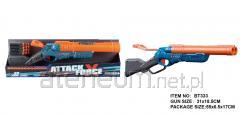 Zalety produktu: pistolet lekki i wygodny w trzymaniu, miękkie i nie szkodliwe pociski piankowe, strzałki należy umieścić w magazynku a po naciśnięciu spustu pocisk wystrzeliwuje z pistoletu. Nie należy strzelać do zwierząt! Zawartość zestawu: pistolet, 6 piankowych strzałek, magazynek na strzałki. Wymiary opakowania: 28 x 20 x 5 cm. Wiek:8+.