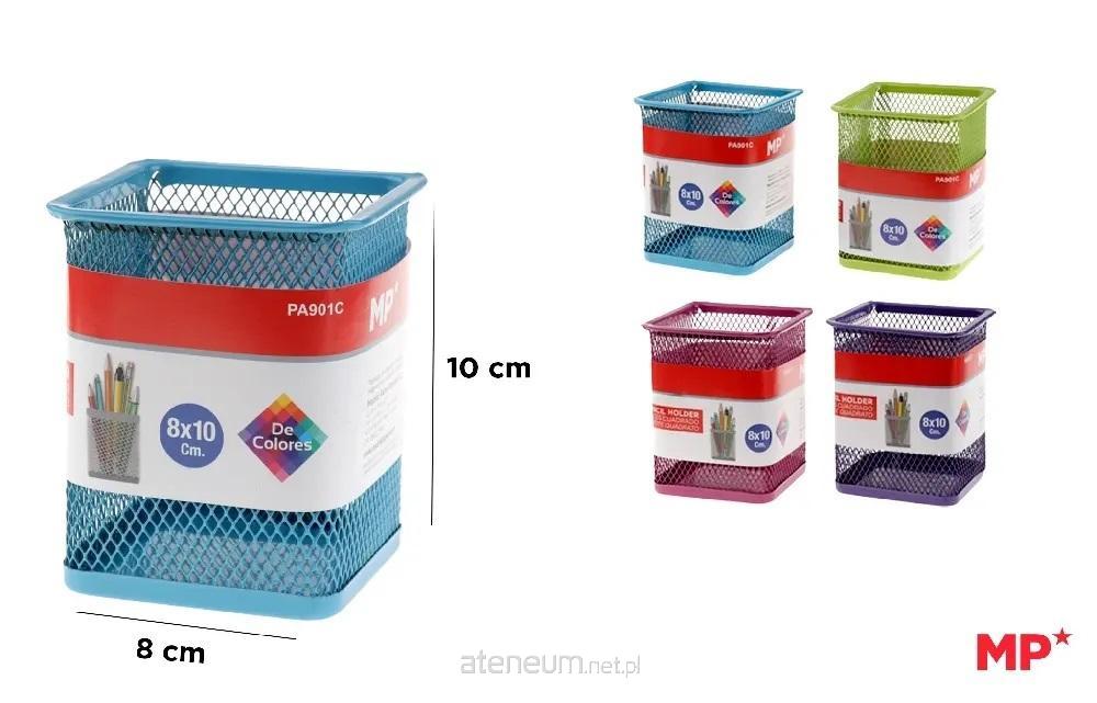 Stojak na ołówki wykonany z metalowej siatki. Idealnydo umieszczania ołówków, długopisów, markerów,korektorów i trzymania ich pod ręką i w porządku.Kwadrat. Szerokość 80 mm. Wysokość 100 mm.Dostępne w trzech różnych kolorach: niebieskim,zielonym i różowym.