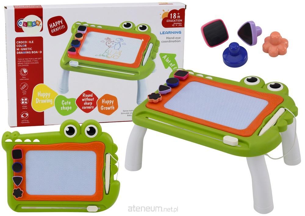 Tablica Stoliczek Do Rysowania Znikopis Krokodyl Stempelki Zielony Stolik do rysowania Znikopis Krokodyl to niezwykła zabawka, która przyciąga uwagę zarówno swoim innowacyjnym designem, jak i bogactwem możliwości twórczych, jakie oferuje. Zaawansowana technologia Znikopisu pozwala na tworzenie kolorowych rysunków bez użycia papieru czy farb. Dzięki magnetycznemu rysikowi dziecko może wyrazić swoją kreatywność, tworząc różnorodne obrazki na ekranie. A gdy coś pójdzie nie tak, wystarczy przesunąć suwak, by wszystko zniknęło i zacząć od nowa - bez bałaganu i zmartwień. Tablica pełni funkcję małego stoliczka, co sprawia, że jest wszechstronną i praktyczną zabawką. Dodatkową atrakcją są stempelki, które pozwalają na tworzenie interesujących wzorów i zdobień, inspirując dziecko do jeszcze większej kreatywności i eksperymentowania. Stolik Znikopis Krokodyl nie tylko rozwija umiejętności manualne i artystyczne dziecka, ale także wspiera jego rozwój poznawczy poprzez stymulację wyobraźni i kreatywnego myślenia. To doskonała zabawka, która zapewni godziny radości i twórczej zabawy każdemu małemu artyście. Wymiary tablicy: 28,5cm x 23cm x 2cm Wymiary stoliczka: 32cm x 23cm x 14,5cmm Wymiary opakowania: 36cm x 24cm x 4cm Posiada certyfikat CE, ponadto jest zgodny z normą EN71. Przeznaczony dla dzieci od 18 miesiąca życia.