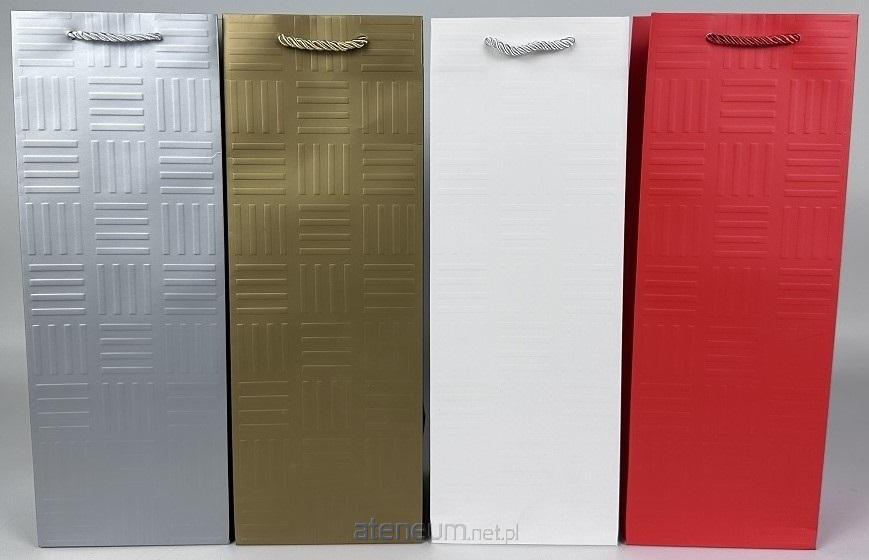 Torebka prezentowa na butelkę Premium. Materiał karton 210 gr. Tłoczone elementy ozdobne. Uchwyt ze sznurka. Mix 4 wzorów. Towar wydawany losowo.