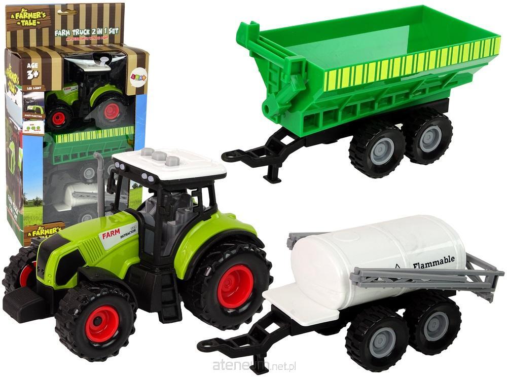 Zestaw Traktor z Maszynami Przyczepa Cysterna Dźwięki LED Fantastyczny zestaw dla małego rolnika traktor wraz z dwoma przyczepkami. Stwórz wielofunkcyjne gospodarstwo rolne z naszymi zabawkami! Ogromna frajda przez długie godziny dla całej rodziny! Zestaw pobudza kreatywność, wyobraźnie oraz wspomaga rozwój motoryki dziecka. Zestaw zawiera miniatury różnego rodzaju pojazdów rolniczych idealnie odwzorowujących prawdziwe maszyny. Nauczą, jak wygląda praca na gospodarstwie, jak wygląda praca na roli, jakie maszyny są potrzebne i niezbędne do pracy. Traktor na samej górze posiada trzy przyciski odpowiadające za funkcje dźwiękowe, świetlne i jazdę pojazdu. Traktor wydaje odgłosy cofania, odpalania, klakson, przy tym świecą górne światła kabiny. Zestaw zawiera: - traktor, - dwie maszyny rolnicze. Zalety zestawu: - Realistyczny wygląd - Światło - dźwięk - naturalna kolorystyka - ruchome części maszyn Wymiary opakowania: 40 cm x 25 cm x 10 cm Fantastyczna zabawa dla każdego dziecko powyżej 3 roku życia. Traktor - zabawka bateryjna na baterie wymienialne - 3x LR44 (AG13) dołączone do zestawu.