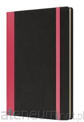 Ozdobny notatnik w formacie A5 z kartonową okładką i elastyczną gumką do zamykania. W środku znajduje się 96 stron w linie.