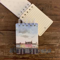 Ozdobny kołonotatnik w formacie A7 z twardą okładką, otwierany do góry. W środku znajduje się 112 stron w linie. Z tyłu zawiera małą, plastikową kieszeń, w której można przechowywać dodatkowe notatki, paragony itp.