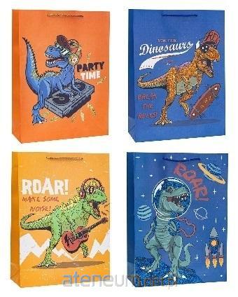 Torebka z brokatem Dinozaur 31x40x12cm A3, mix 4 wzorów