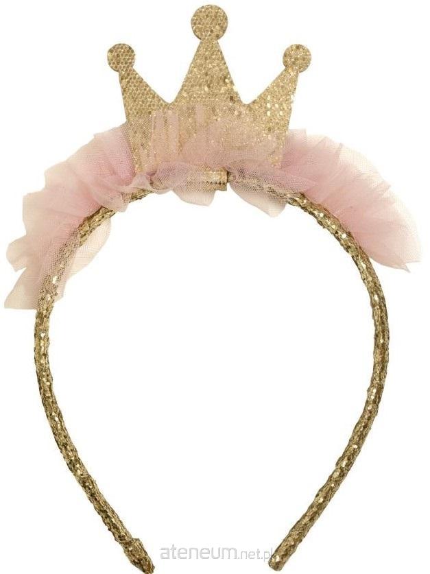 Opaska ze złotą koroną i różowym tiulem