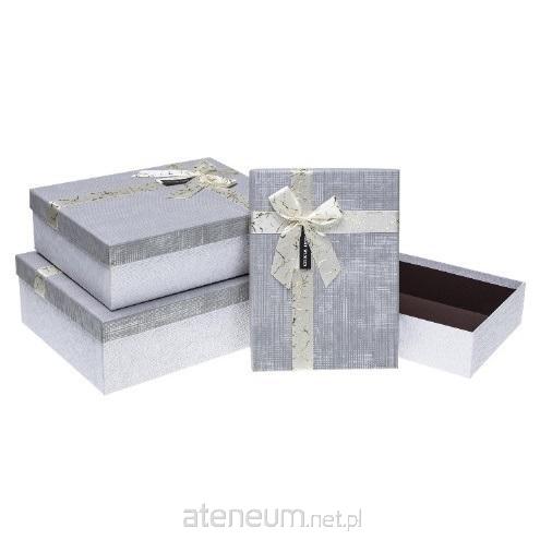 Pudełko prezentowe z kokardą 3szt srebrny ROZETTE