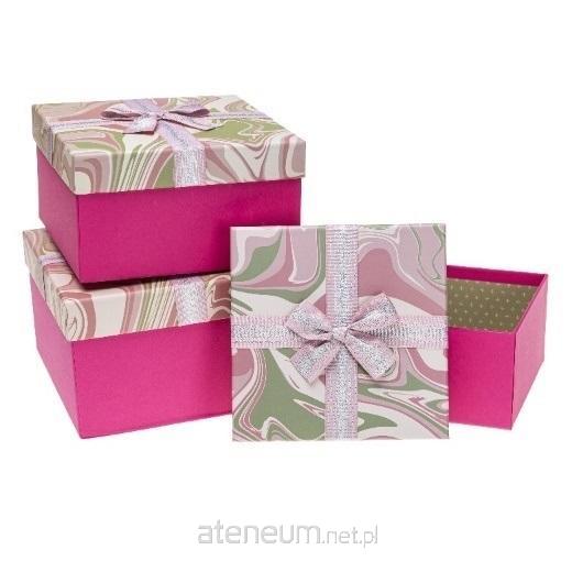 Zestaw pudełek prezentowych kwadratowych 3szt, motyw różowy