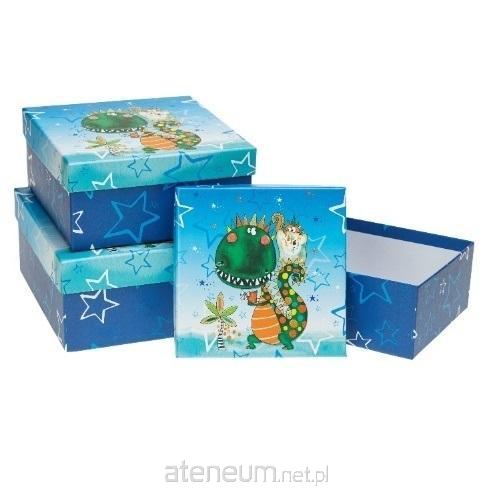 Zestaw pudełek prezentowych kwadratowych 3szt, motyw niebieski ze smokiem