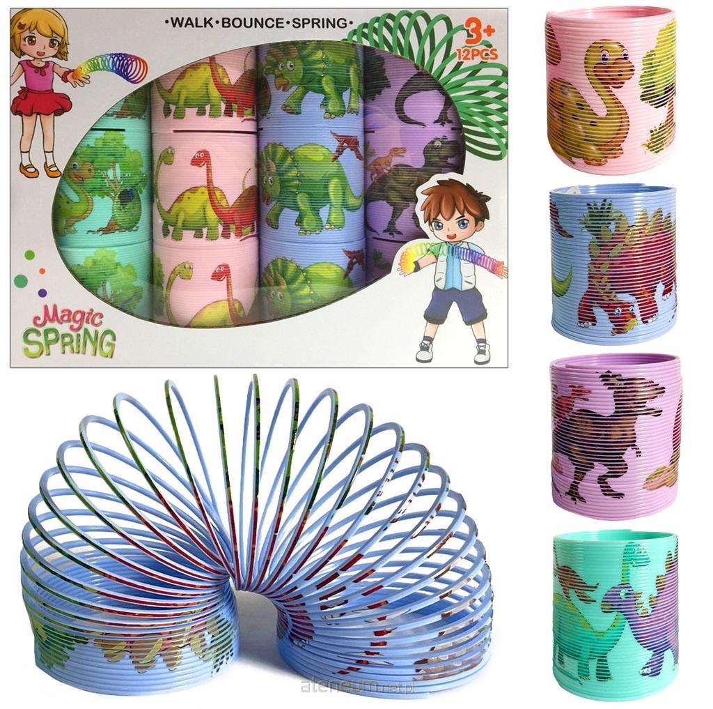 Sprężyna ćwiczy koordynację wzrokowo-ruchową zapewniając przy tym mnóstwo zabawy. W tej wersji na zewnętrznej stronie znajdują się wizerunki dinozaurów.