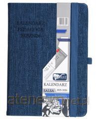 wewnątrz: plan roku i rozkład roku 2025, terminy ferii zimowych, święta oficjalne i zwyczajowe, podróże, protokół powypadkowy w przypadku stłuczki, notes, skorowidz teleadresowy, kalendarium dodatkowe na 2024-2025-2026 rok