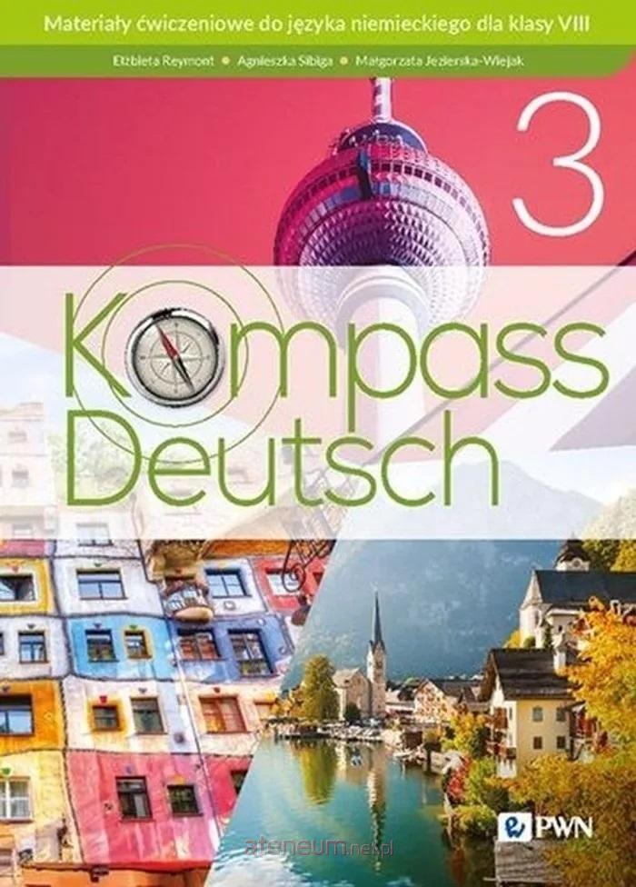 Kompass Deutsch 3. Materiały ćwiczeniowe do języka niemieckiego dla klasy 8 to bogaty zbiór różnorodnych, atrakcyjnych dydaktycznie zadań językowych. Uczniowie znajdą tu ćwiczenia automatyzujące struktury gramatyczne, utrwalające i rozszerzające słownictwo oraz rozwijające sprawności rozumienia tekstu czytanego i pisania.