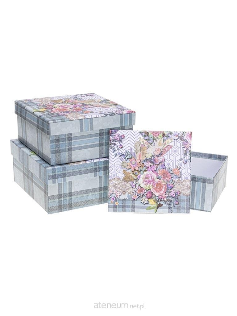 Zestaw pudełek prezentowych 3szt, motyw kraty z kwiatami
