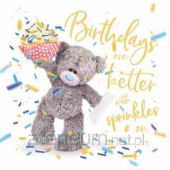 Karnet holograficzny 3D - Miś niosący babeczkę