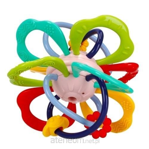 Ten wielobarwny gryzak, skonstruowany z miękkich obręczy o różnej grubości i fakturze, doskonale nadaje się także do nauki chwytania, manipulowania pobudzając przy tym zdolności manualne i zmysł dotyku. Bogata gama kolorystyczna aktywizuje zmysł wzroku oraz percepcje. Zabawkę bez trudu maluch może utrzymać w rączce, potrząsać, by wydawała dźwięki oraz obracać kulę, by poruszyć osadzone na niej pierścienie. Odgłos click- clok uatrakcyjnia tą formę aktywności. Dodatkowe elementy jak kółeczka czy okręgi - kwiatuszki okaląjące obręcze, skłaniają dziecko do ich przesuwania wzdłuż nich, absorbują uwagę na długo ucząc precyzji i wytrwałości. Zabawka wykonana z najwyzszej jakości, bezpiecznych materiałów bez ftalanów, zgodna z normą EN-71 oraz CE. Wymiary/waga/baterie: wymiary produktu (dł. x wys. x gł.)[cm]: 12x12x12, wymiary opakowania (dł. x wys. x gł.)[cm]: 16x16x12, waga produktu bez opakowania [kg]: 0,12 kg, waga produktu w opakowaniu [kg]: 0,22 kg, nie wymaga zasilania bateriami. Zabawka przeznaczona dla dzieci w wieku: 6m+. Pakowana w kartonik z okienkiem.