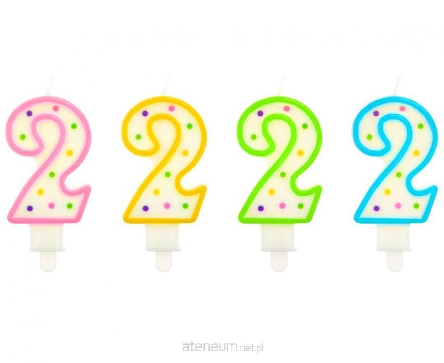 Świeczka cyferka z kropeczkami 2, 7.5 cm Wysokość świeczki: 6,5 cm Wysokość świeczki z podstawką: 7,5 cm Ilość: 1 szt. Producent: Godan S.A.
