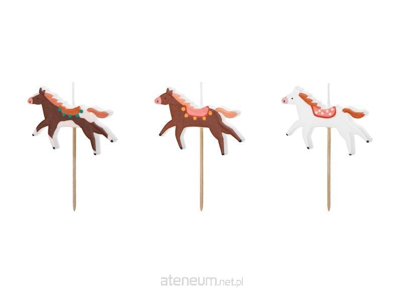 Świeczki urodzinowe Konie, mix kolorów, wymiary ok. 5.8 x 4 cm. Zestaw zawiera 3 świeczki.(1 op. / 3 szt.)