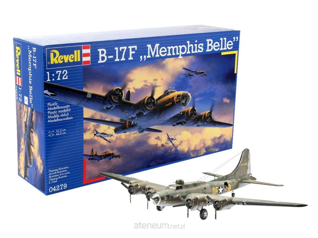 Szczegółowe powierzchnie z wgłębionymi złączami paneli - Szczegółowo wykonany kokpit, w tym konsole i tablica przyrządów - Indywidualne siedzenia - Stojaki w komorze bombowej wraz z punktami załadunku - 4 bomby - Celownik bombowy i przedni fotel - Szczegółowo wykonana pozycja radiooperatora/nawigatora z wyposażeniem - Opcje bocznych okien do uwzględnienia stanowiska karabinu maszynowego - Obrotowa wieża karabinu maszynowego - Szczegółowo wykonana górna wieża działa - Przezroczyste plastikowe części przedniego i górnego średniego poziomu karabinu maszynowego - Tylny karabin maszynowy - Oddzielny ster - Klapy skrzydłowe do montażu w rozłożonym lub schowanym pozycja - 4 szczegółowe silniki promieniowe z pierścieniem wydechowym - Pierścienie chłodziwa mogą być ustawione otwarte lub zamknięte - Imitacja turbosprężarki - Oddzielne kanały wlotu powietrza - Oddzielne stery wysokości i lotki - Szczegółowe zestawy naklejek na podwozie dla 2 wersji USAAF: - B-17F-10-BO , numer seryjny 41-24485, DF-A, "Mephis Bell", 8. Siły Powietrzne, 91. Grupa Bombowa, 324. Dywizjon Bombowy, Bassingbourn, Wielka Brytania, maj 1943 - B-17F-10-BO, numer seryjny 42-29591, LL-Z , "The Shamrock Special", 8. Siły Powietrzne, 91. Grupa Bombowa, 401. Dywizjon Bombowy, Bassingbourn, Wielka Brytania, październik 1943.