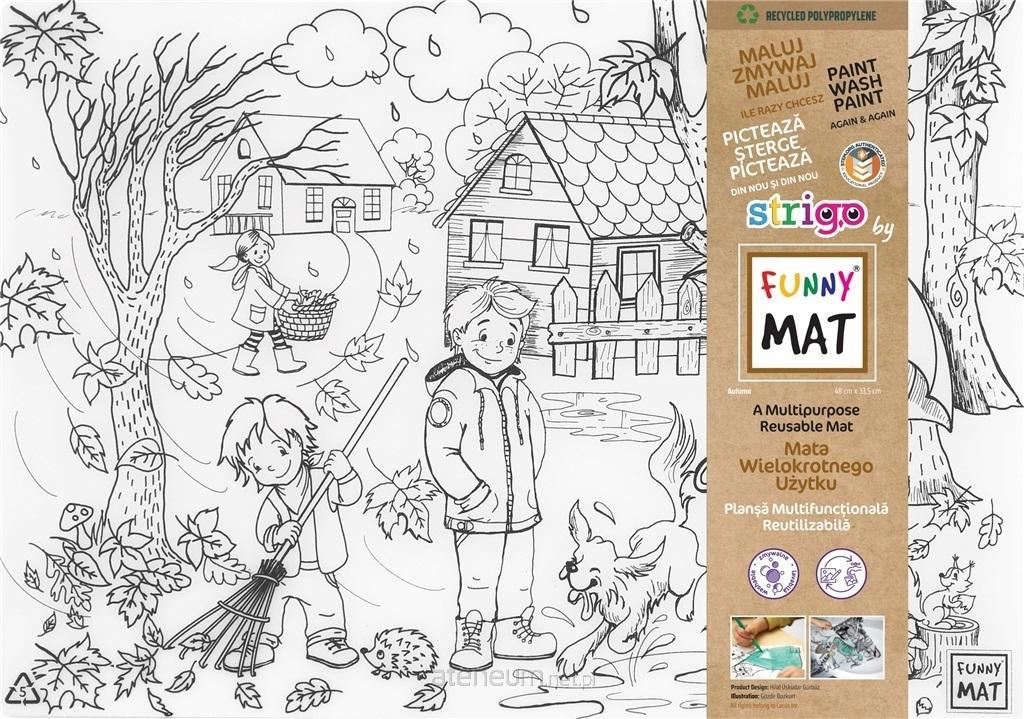 Mata biała Jesień Funny Mat recycled 48x33,5cmWodoodporna mata wielokrotnego użytku do rysowania, malowania i nauki. Idealny produkt do rozwijania wyobraźni, pobudzenia kreatywności, pełni też funkcje edukacyjne. Do wykorzystywania maty używaj flamastrów, które posiadają tusz na bazie wody.