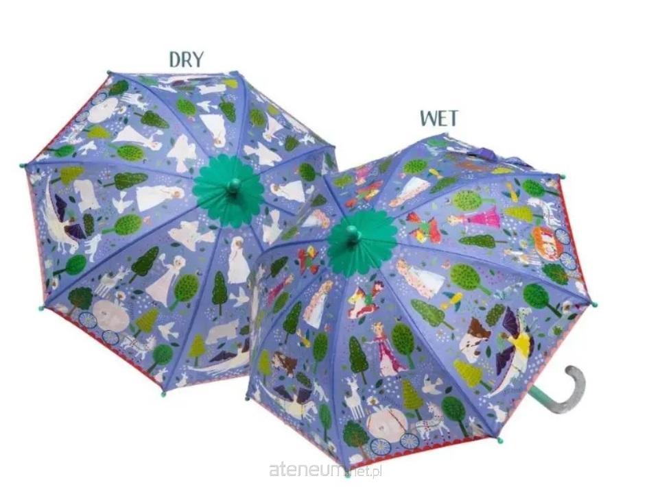 Zapewnij swojemu dziecku niezapomniane przygody podczas spacerów w deszczu dzięki magicznej parasolce zmieniającej kolory! Za każdym razem, gdy deszcz zaczyna padać, białe kształty na parasolce magicznie wypełniają się kolorowymi motywami bajkowego świata, rozweselając nawet najbardziej pochmurny dzień. Gdy parasolka wysycha, kolory wracają do bieli. W komplecie znajduje się wygodne zapięcie na rzep, które zabezpiecza złożoną parasolkę. Cechy: